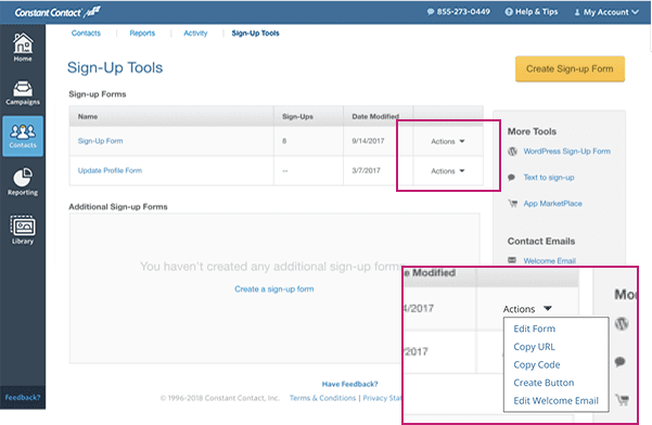 I led the design of a sign-up forms dashboard and editor to enable small business to grow their list of contacts.